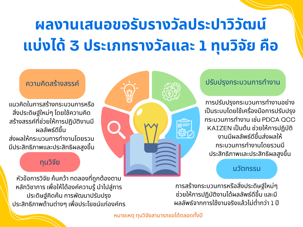 เป็นรางวัลที่มอบให้กับผู้ที่ใช้ความคิดสร้างสรรค์ในการปรับปรุงกระบวนการทำงาน นำไปสู่การสร้างนวัตกรรมเพื่อยกระดับองค์กร์ให้เป็นมาตรฐานสากล ส่งเสริมการจัดการความรู้สู่นวัตกรรม